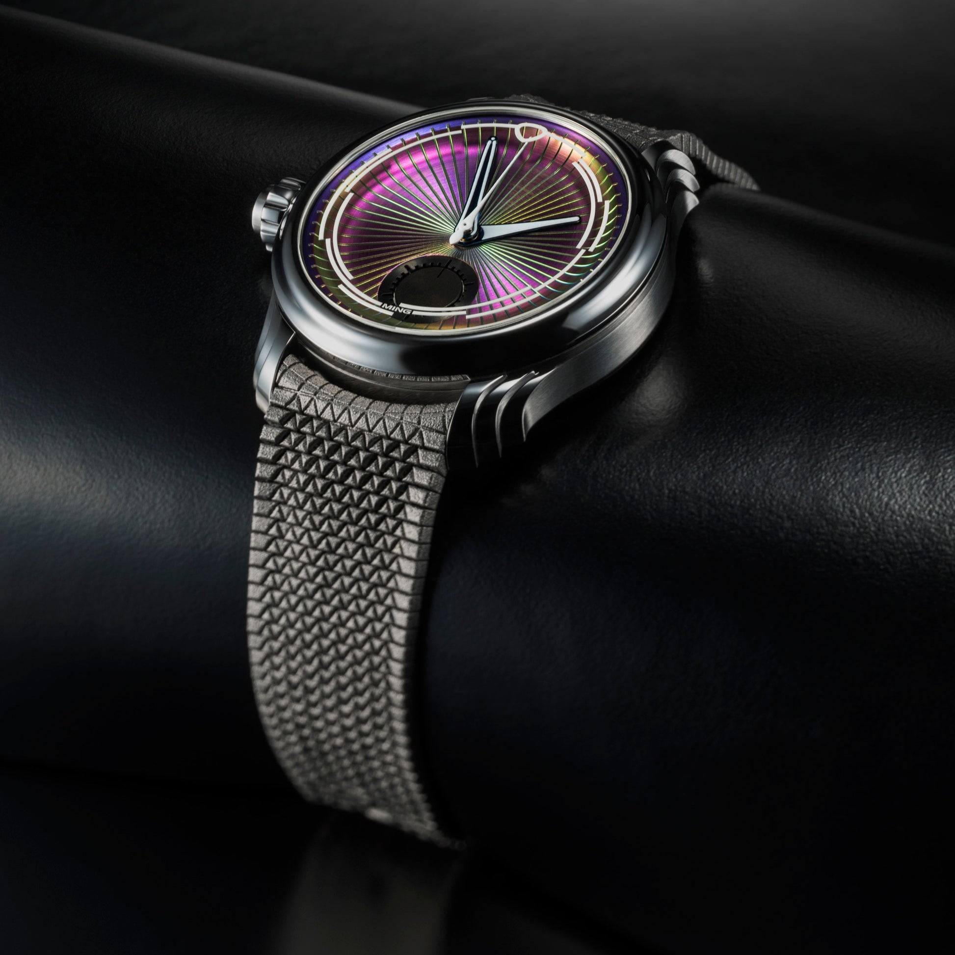 What if you could have the best of both worlds? Why limit yourself to just six positions? What would every color on the spectrum look like? Asking questions like these all the time has led MING to watches like the 57.04 Iris and LW.01 Ultralight, and innovations like the sapphire Mosaic, multiphasic coatings, MING Polar White among many others. It is, with a little pride, that MING can say they've done it again and this time, all are proud to present what is (likely) the first ever of its kind: because MING lacks the language to describe it fully, it's best summarized as: the MING Polymesh, the world’s first 3D printed, titanium bracelet-strap hybrid.