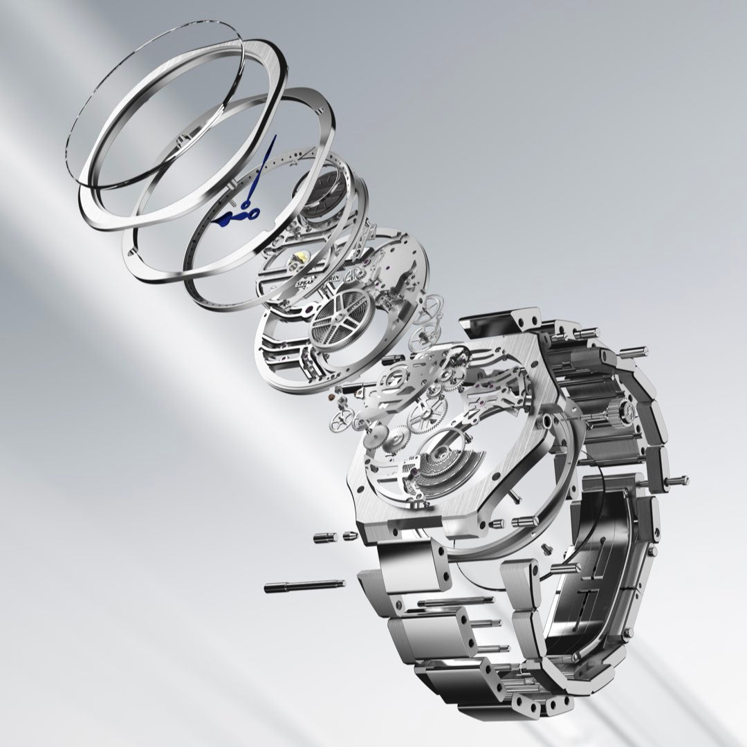 - In-house manufacture skeleton self-winding calibre SMA07 with fully integrated micro-rotor