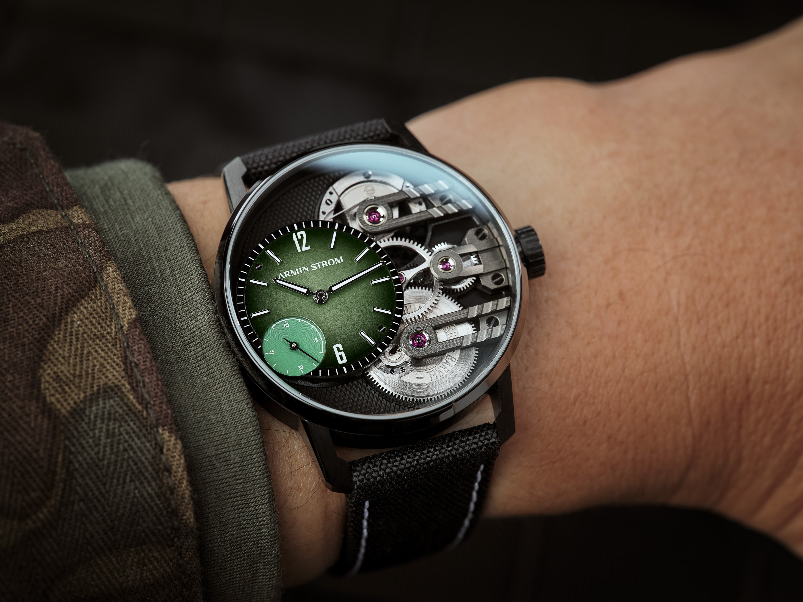 Enhancing Armin Strom's highly technical approach to watchmaking with a complementary tactical vibe.
