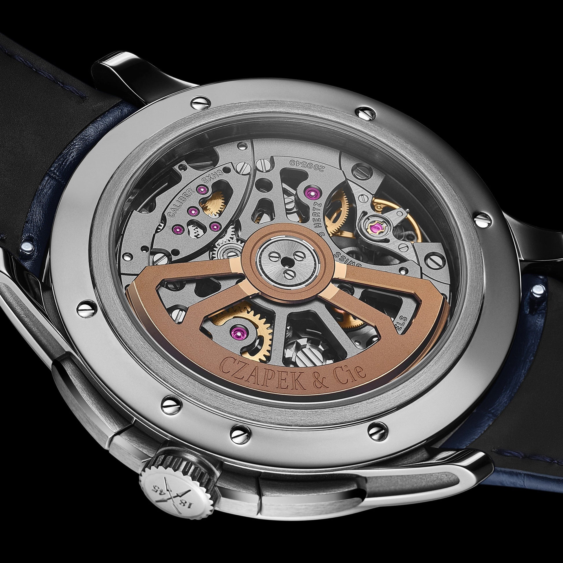 alludes to the racing heritage of tachymeters. Its name, Crossroads, describes the pattern of intersecting lines as well as symbolizing Czapek’s position at the crossroads of watchmaking tradition and a modern approach. Dynamic, alive and exciting, the dial is indeed an “invitation to race”.
