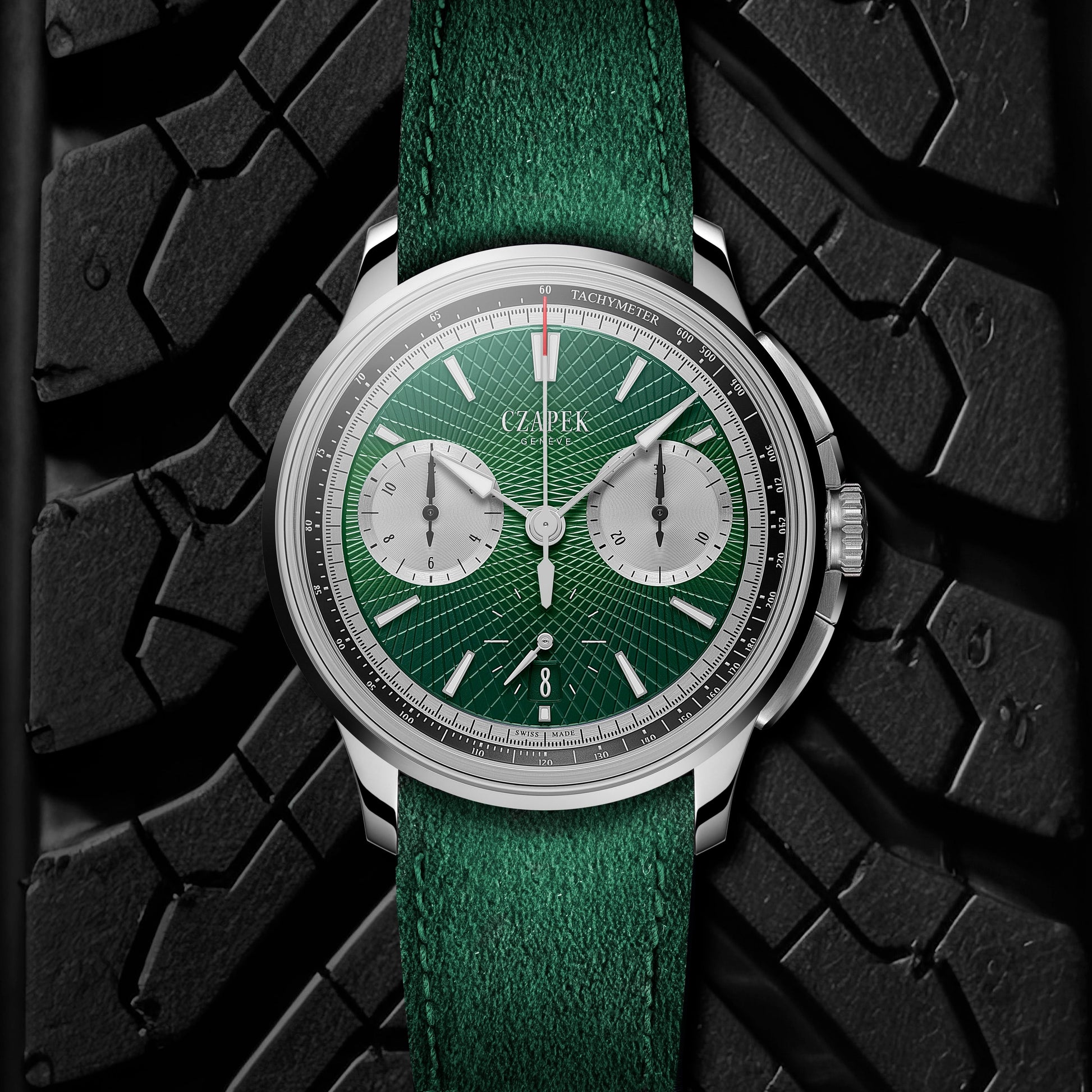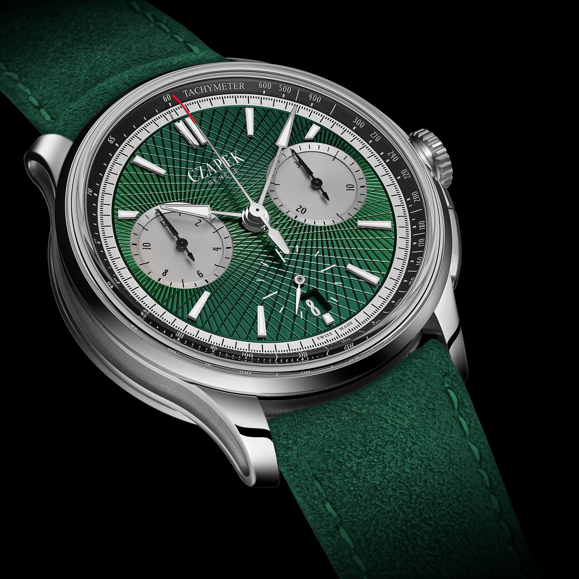 - Handcrafted Czapek guilloché “Crossroads” dial in ‘Alloy 401’ (AuPtPdAg) in a vivid green colour