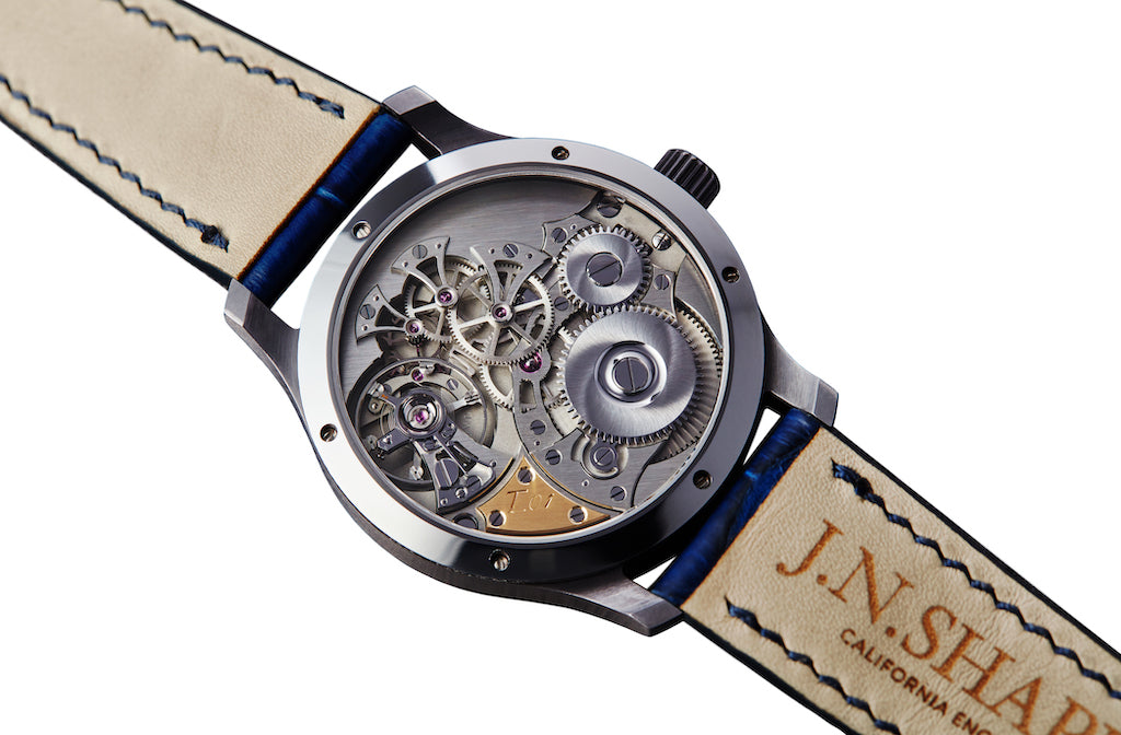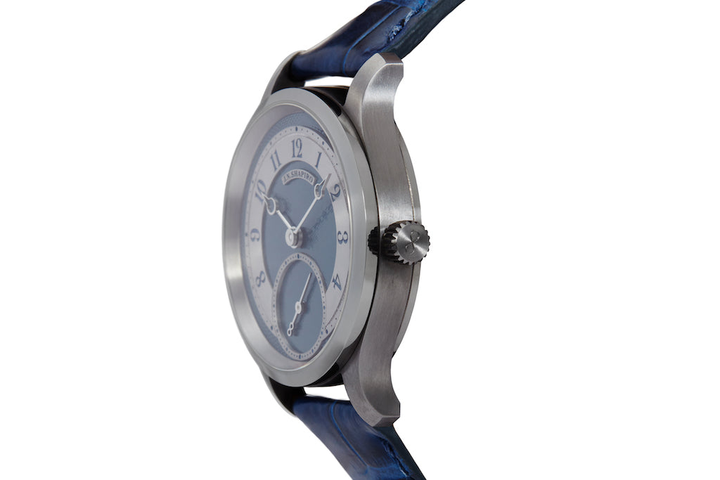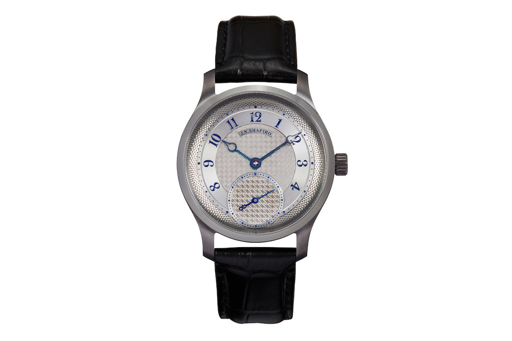 Ten years later, his career in high-school education is a thing of the past. Shapiro is now a fully-fledged independent watchmaker with four fulltime employees. They make limited-edition pieces by hand, featuring his own movement and dial decoration. All J.N. Shapiro watch cases are machined in-house.
