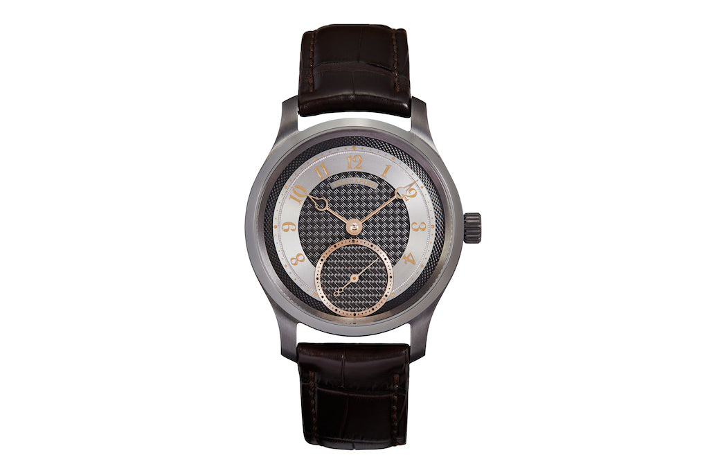 - Black ruthenium dial with tantalum hours chapter rings, rose gold hands, seconds rings and numerals