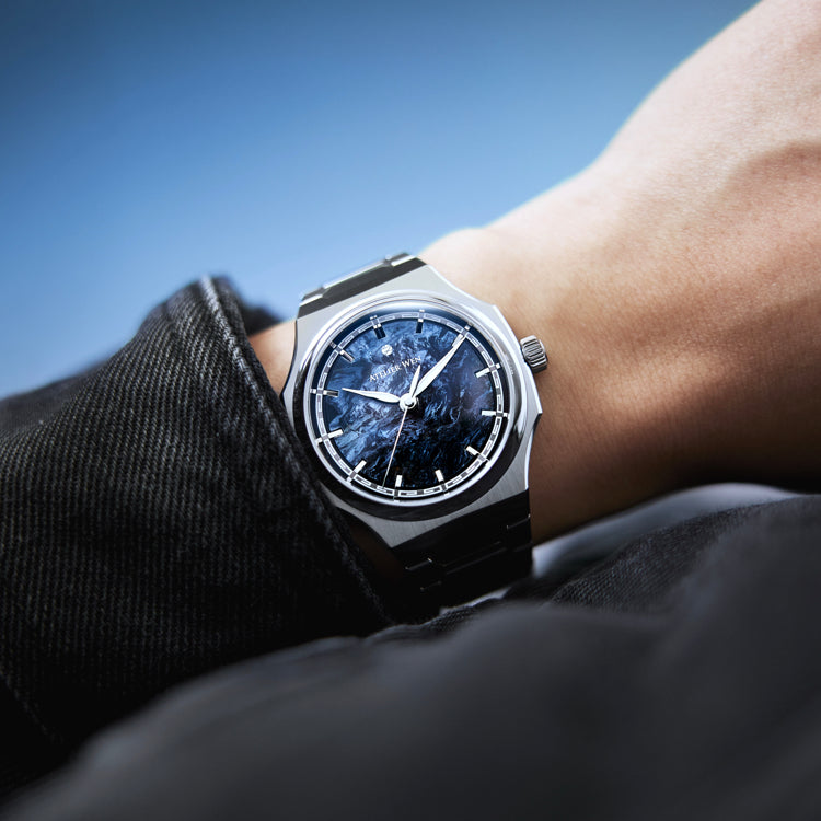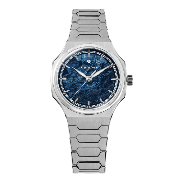 This edition introduces an all-new dial craft into its architectural form - with a natural pietersite dial that has been cut by hand by craftsmen in Zhejiang, and polished in Guangdong.