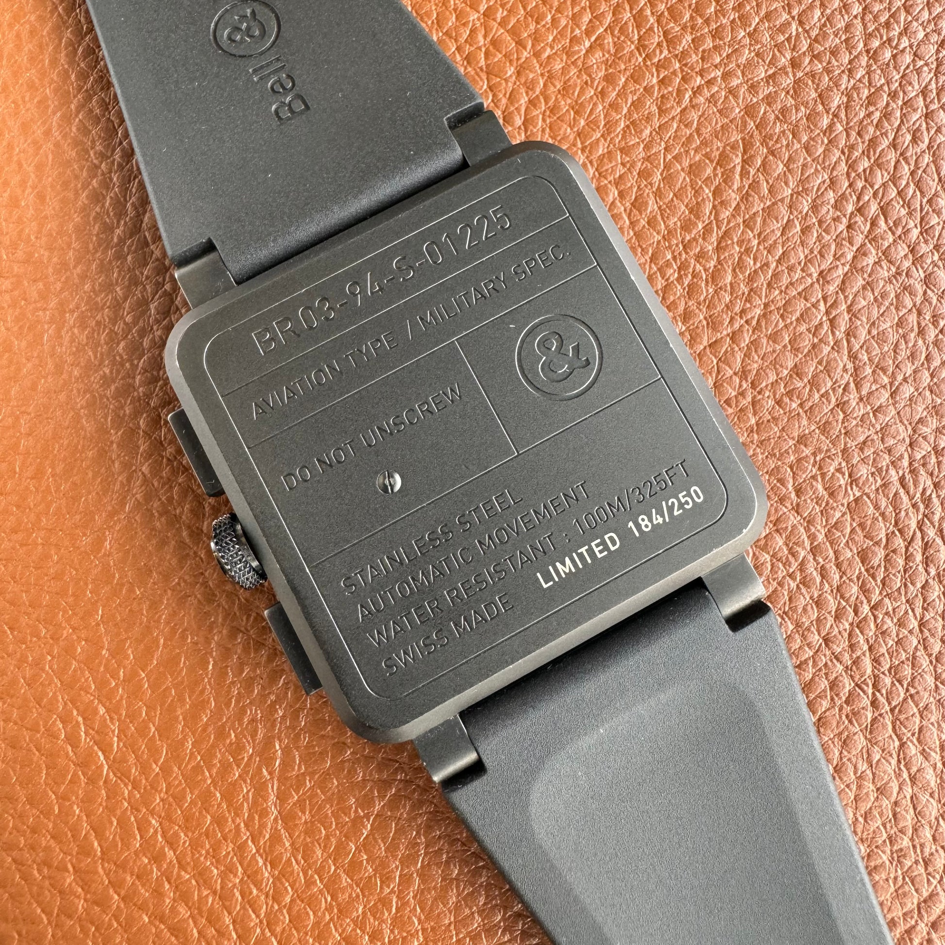 Bell & Ross Limited Edition Reference BR03-94-S-01225 – PVD-coated stainless steel chronograph with date. Circa 2005. Limited edition of 250. Watch only.