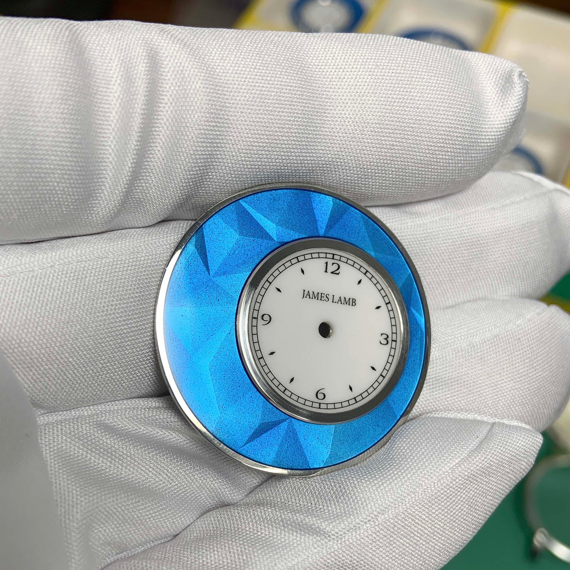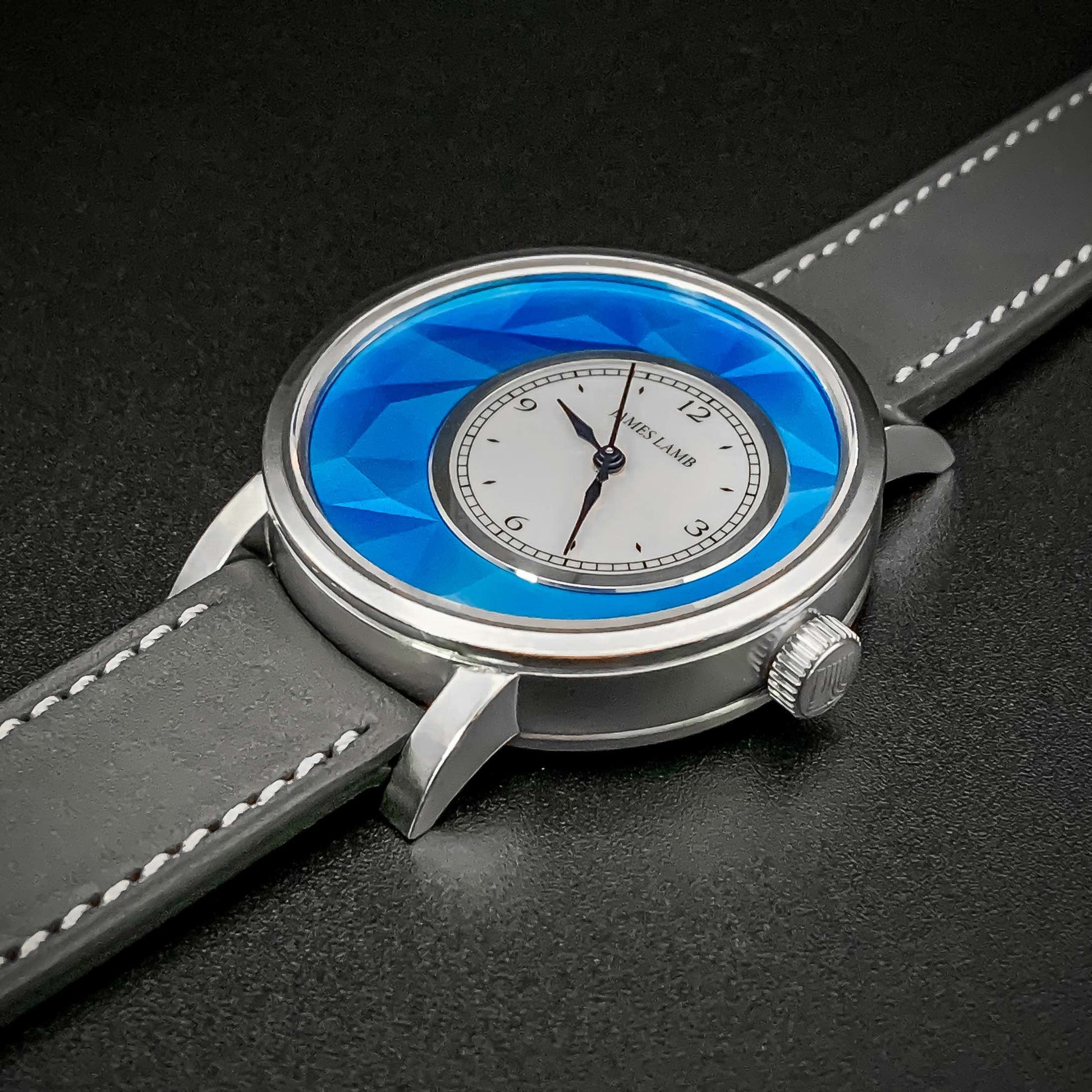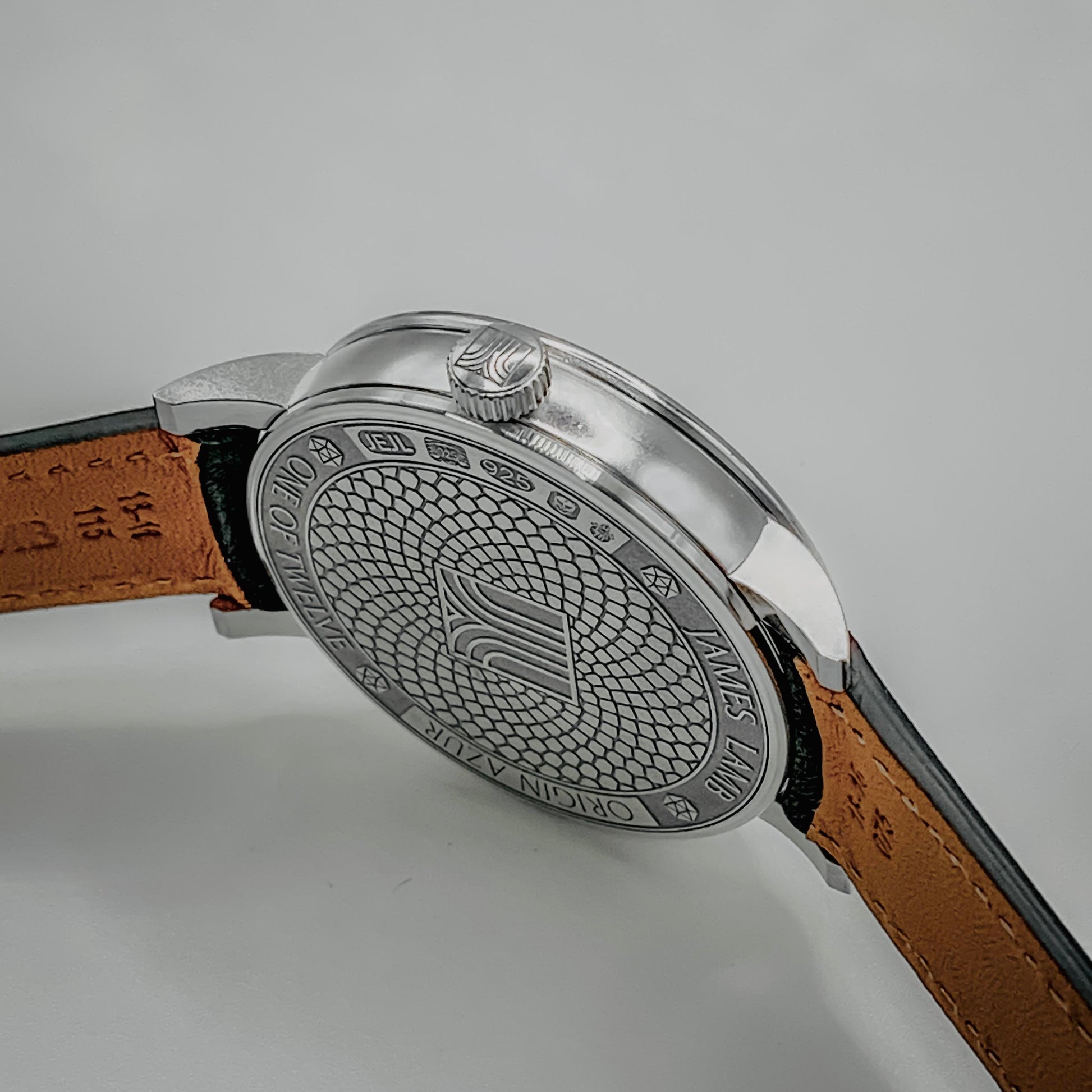 Please note: James Lamb watches are handmade. The case are made using silver, which is a softer metal than stainless steel. There may be some slight imperfections (minor marks or scratches) on the case that are natural and common on handmade cases. Additionally, the enamel dials are made by hand by a master enameler in the UK - because they're done individually, there may be some slight variation in appearance from watch to watch.