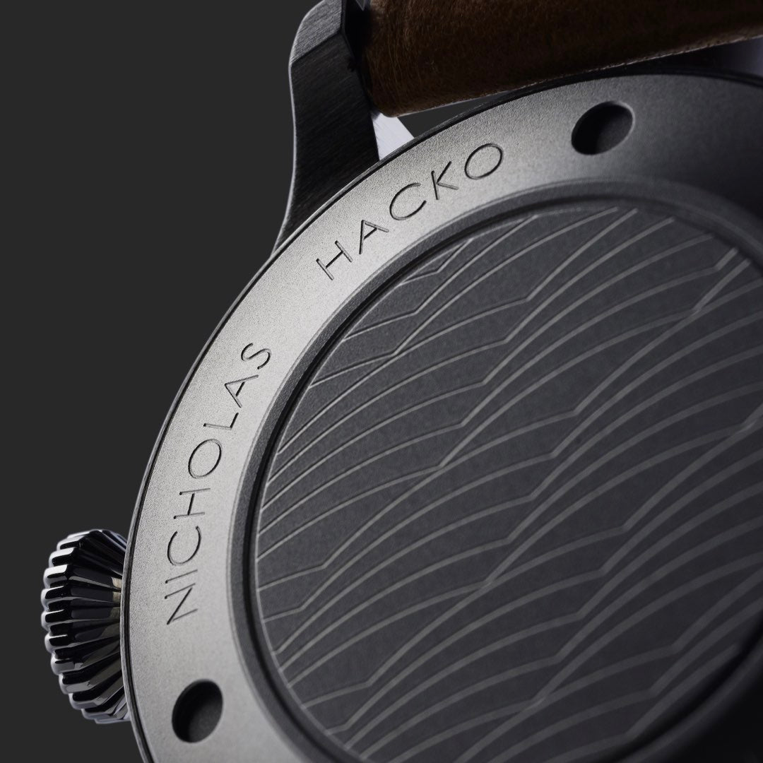 The Nicholas Hacko Mark II is an attempt to showcase the Hackos' ability to shape a metal. To turn a plate of raw titanium into a splash of colour, to create mesmerizing patterns, to form extremely delicate yet fully functional watch components using the most precise machinery, and then to hand finish them to as close to perfect as humanly possible. To continue 400 year old traditions of mechanical horology.