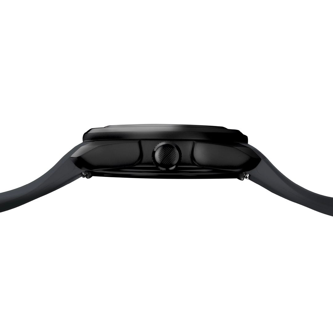 - Bracelet: Decorated rubber, 22 mm x 20 mm with quick-release spring bars and deployant clasp with safety lock