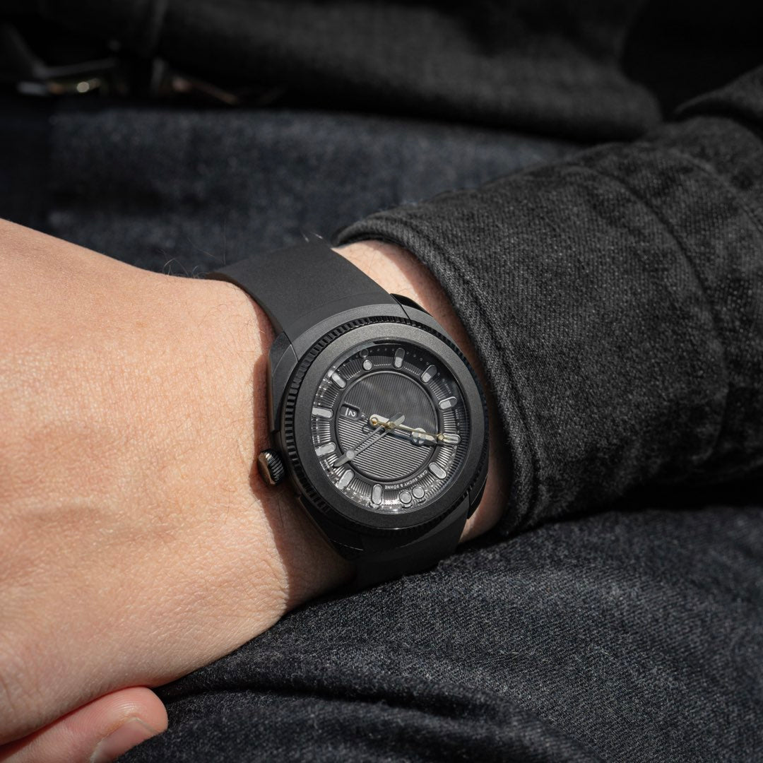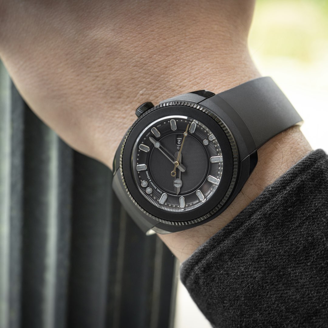 The Belvedere Midnight impresses with its deep black colour scheme, the impressive shine of the resistant DLC coating and the striking fluted bezel. This all-black model gives the Belvedere an impressive radiance, an aura of sporty elegance and robustness.