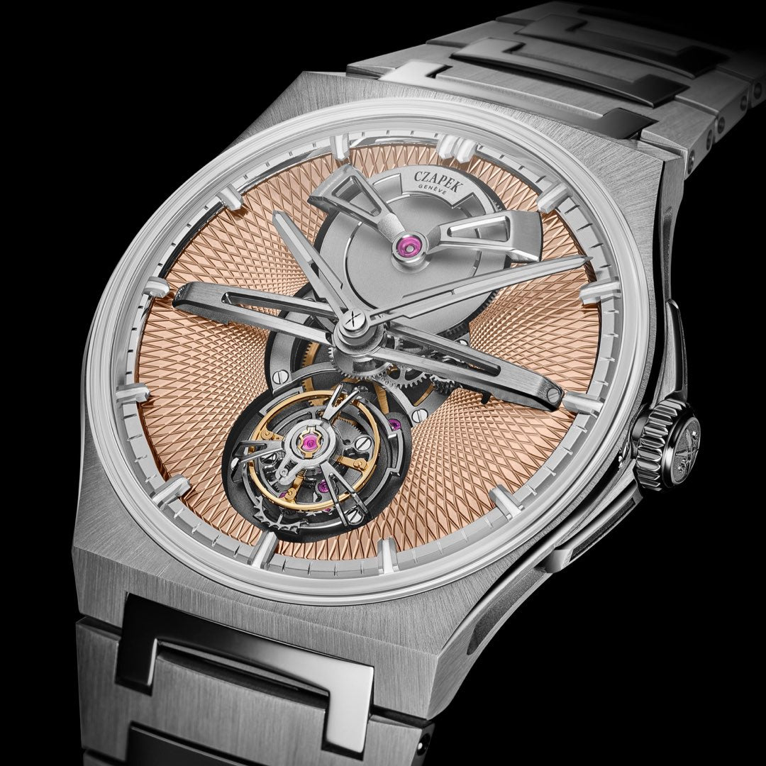 - Calibre 9: Czapek manufacture tourbillon movement, mechanical with automatic winding