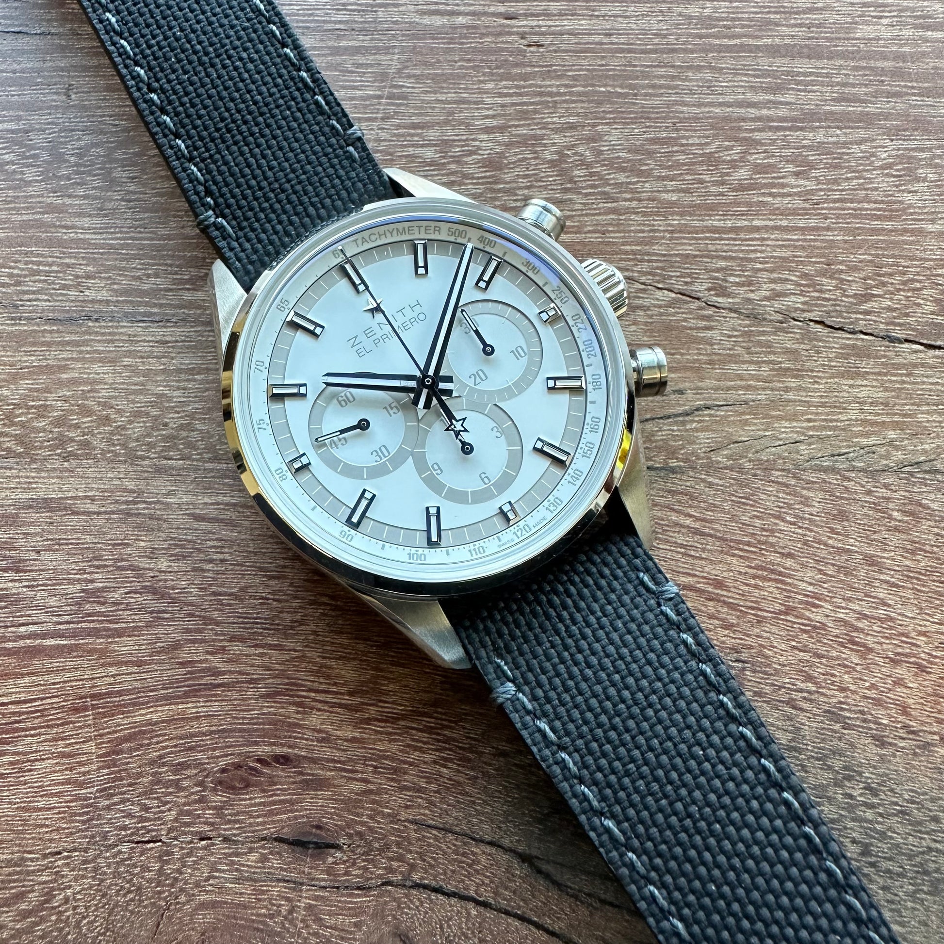 Our fist collaboration, the Zenith El Primero Chronomaster C.01, tells the first chapter of Collective’s story: Our origins in Silicon Valley. To do so, the C.01 embraces the design language of modern technology products, while remaining true to the El Primero’s heritage. Dial, hands, luminous material, case finishing, strap and movement (i.e., no date) are all distinct to this reference.