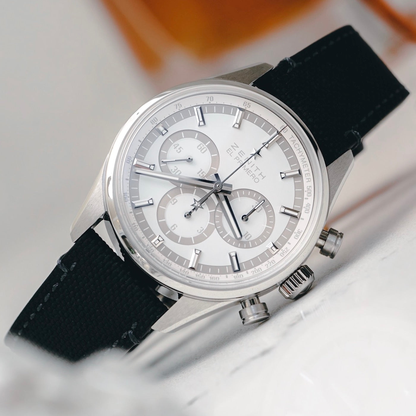 Our fist collaboration, the Zenith El Primero Chronomaster C.01, tells the first chapter of Collective’s story: Our origins in Silicon Valley. To do so, the C.01 embraces the design language of modern technology products, while remaining true to the El Primero’s heritage. Dial, hands, luminous material, case finishing, strap and movement (i.e., no date) are all distinct to this reference.
