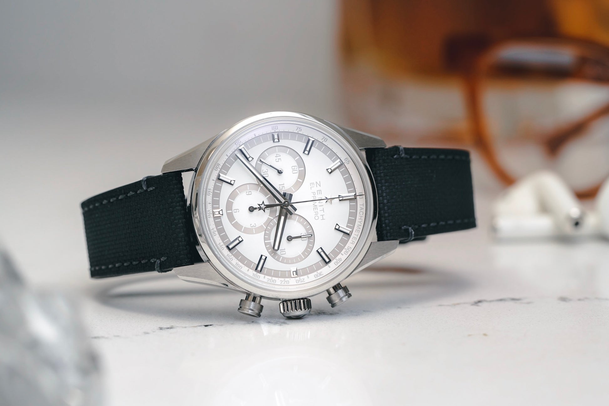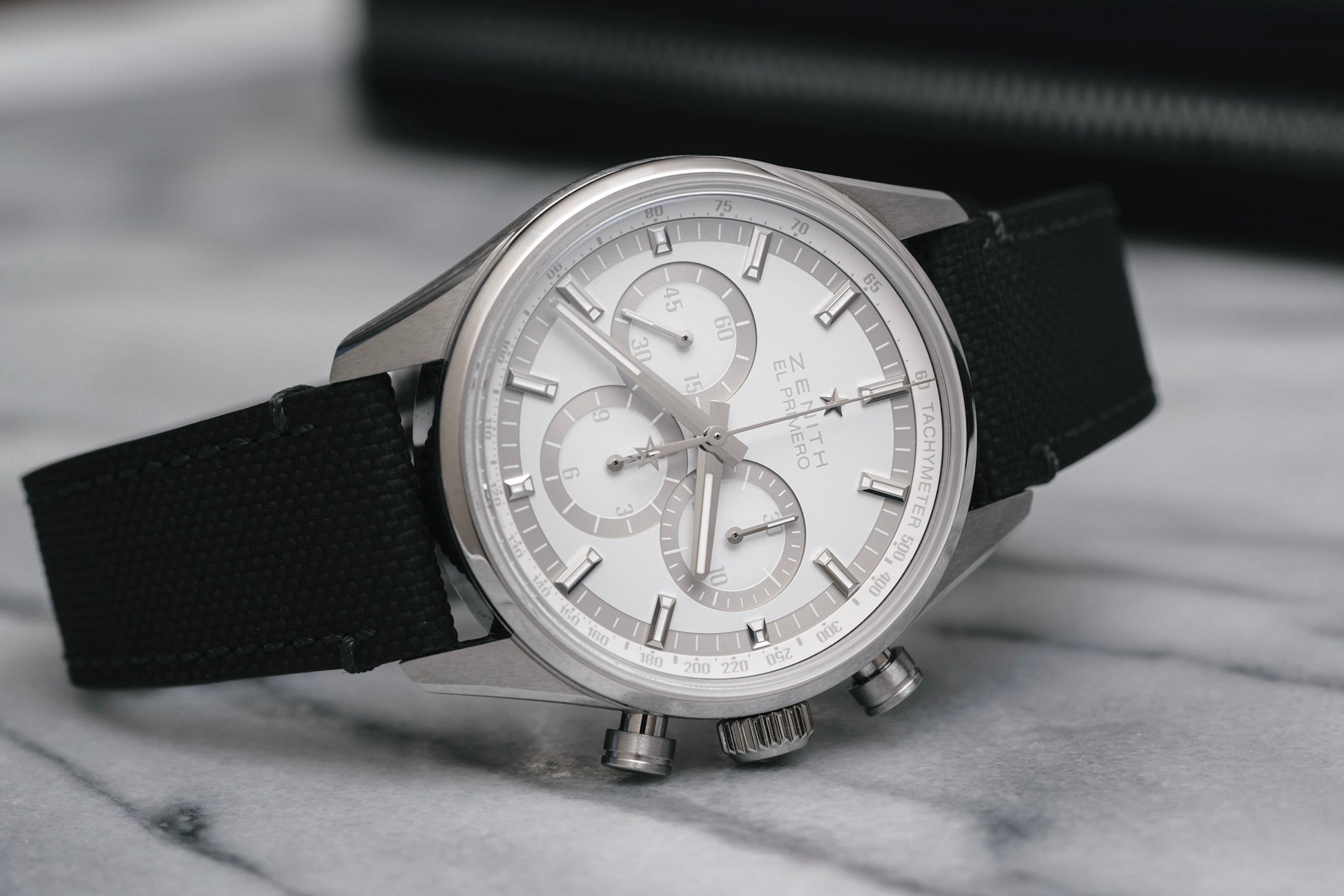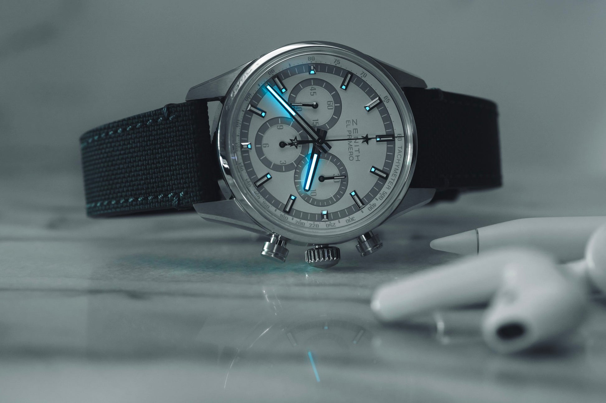 Our fist collaboration, the Zenith El Primero Chronomaster C.01, tells the first chapter of Collective’s story: Our origins in Silicon Valley. To do so, the C.01 embraces the design language of modern technology products, while remaining true to the El Primero’s heritage. Dial, hands, luminous material, case finishing, strap and movement (i.e., no date) are all distinct to this reference.